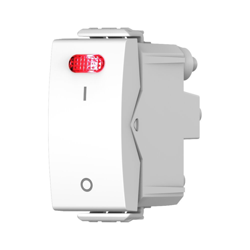 מפסק דו קטבי מואר מסדרת הדגל ניסקו סוויץ’. פריזמה גדולה לאינדיקציה ברורה של מצב הפעולה. האביזר מסופק עם נורת לד אדומה. החלפה מהירה וקלה של הנורה. מתאים לזרם 16AX. תוספת פינים לחוצים לקצוות החוטים למניעת מגעים רופפים ולסגירה נוחה ובטוחה.