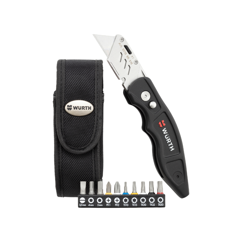 ערכת סכין טרפזית מתקפלת איכותית בנרתיק עם 10 ביטים